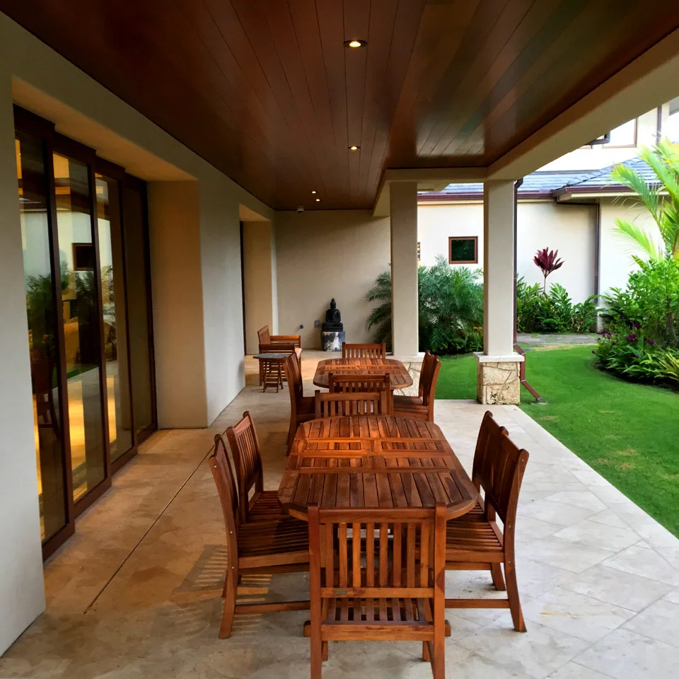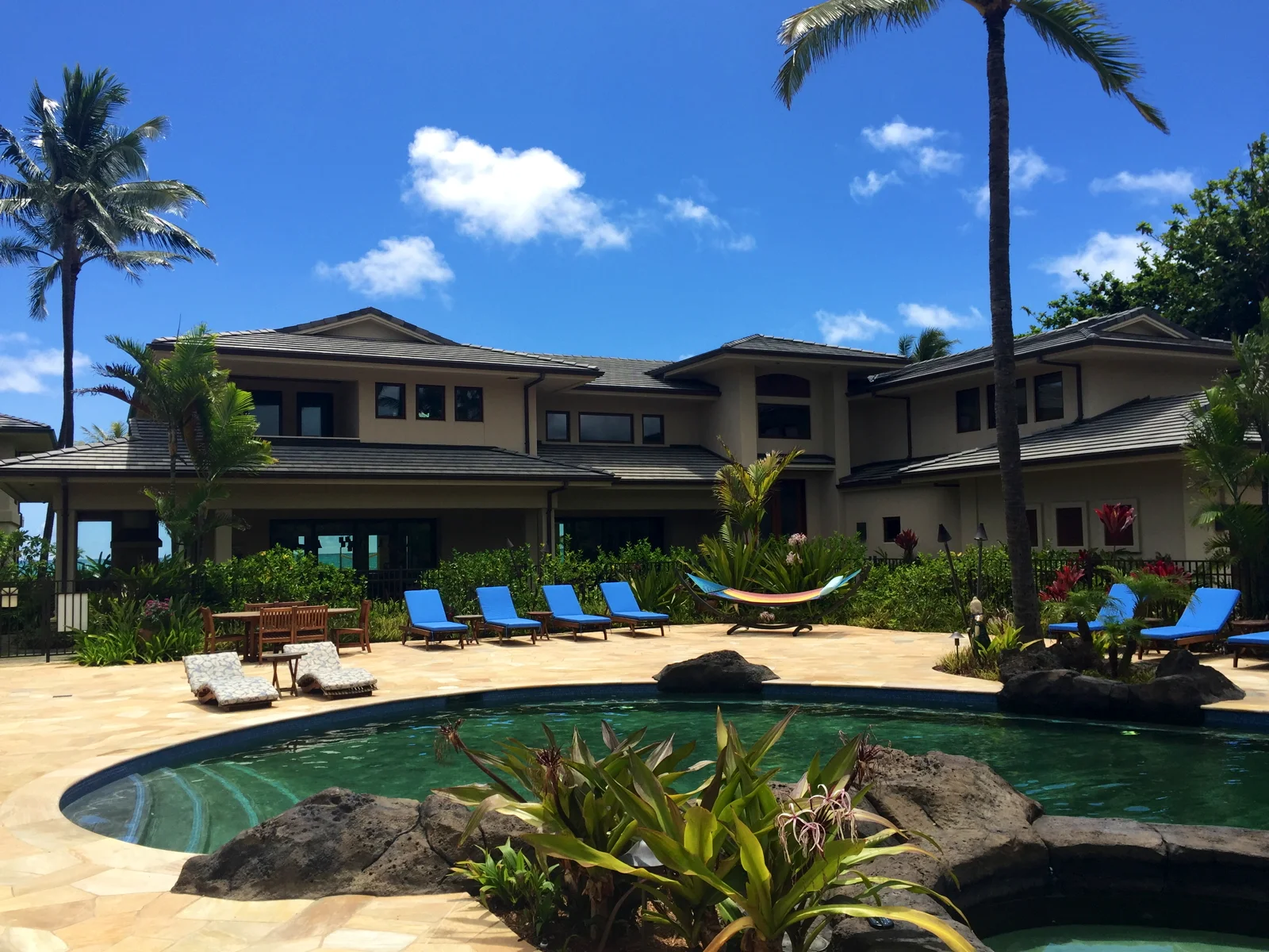 The Mele Komo Estate is comprised of two homes on two acres of private gated beachfront splendor. Each with 6 bedrooms, 6.5 bathrooms, and kitchens that most chefs dream of preparing meals in. The spacious kitchen has extensive granite counters for group dining prep, a Wolf gas range, rich mahogany wood cabinets, and plentiful storage throughout. With 7500 square feet of living space, this estate lives amidst a tropical paradise with towering palm trees and vibrantly-hued tropical flowers and foliage. Mele Komo is exquisitely decorated in an aesthetically pleasing combination of elegantly crafted Balinese rattans, Chinese and Japanese antiques and beautiful tropical art pieces.